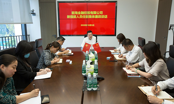10月5日,前海金控召開新提拔人員集體廉政談話會,公司黨委副書記、總經(jīng)理李劍峰同志對近期提拔的15名同志進行了集體廉政談話。