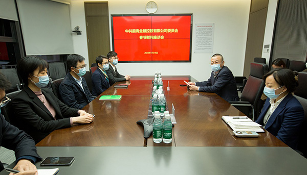 又是一年新春到,最是情暖歲寒時。1月18日下午,前海金控黨委書記、董事長孟曉主持召開座談會,慰問一年來在疫情防控、應急值守等一線防疫崗位上辛勤工作的8名員工,為他們送上慰問金和節日問候,并進行了座談交流。公司黨委副書記王凡參加座談。